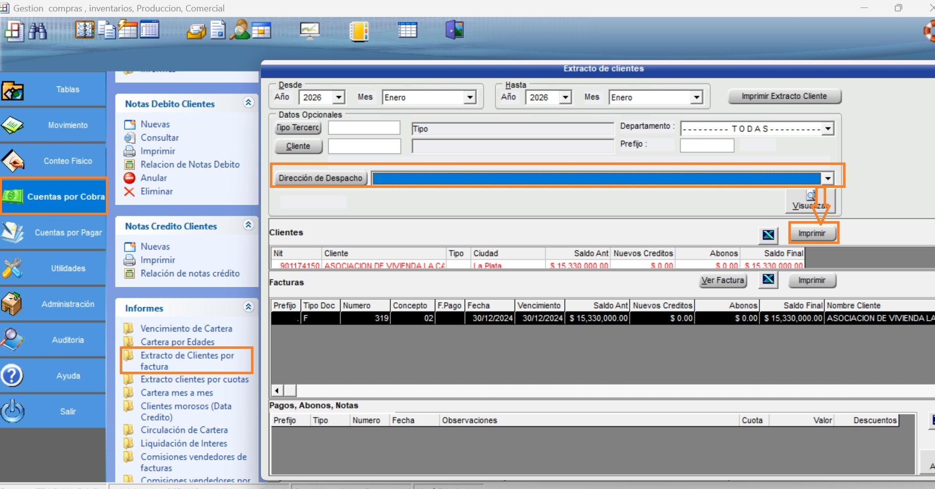 Dirección de despacho